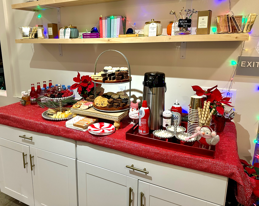 A guided candle-making experience led by our team. Guests select vessels, create custom fragrance blends, and pour a 9oz candle.